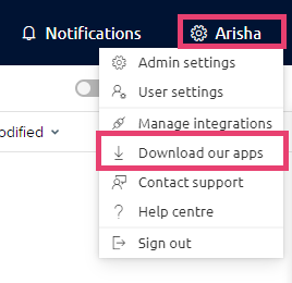 - Go to the download center by clicking on your username in the top right of the SuiteFiles web app