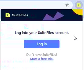 To get back up and running, you will need to restart Chrome (i.e. close and reopen your browser) and check you're logged into the SuiteFiles Chrome Extension. You can follow the quick steps here: Checking the Chrome extension is logged in.