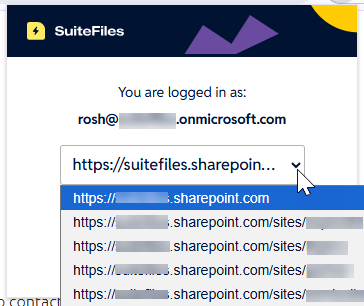 - This version of the Chrome extension will recognize your SuiteFiles Site URL automatically, but you can click the drop-down to verify you're logged into the correct site in case you have multiple sites .